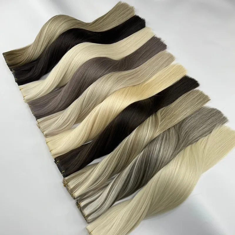 Genius Weft, teknik sambungan rambut mewah, digunakan untuk memanjangkan dan melebatkan rambut. Ia menggabungkan rupa semula jadi weft rambut tenunan tangan dengan ketahanan wefts tenunan mesin. Ringkasnya, Sambungan Rambut Genius Boleh Digunakan Semula kami mempunyai empat ciri teras: